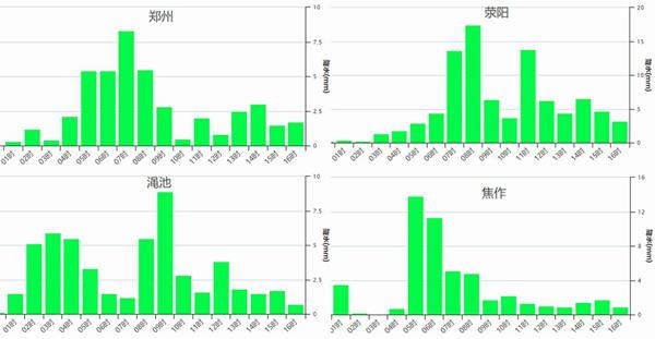 在这轮降雨过程中,整体上来看以稳定性降雨为主,但也不乏短时强降雨出现。像安徽亳州,河南许昌、太康、扶沟、鄢陵都出现了一小时雨量20毫米以上的短时强降雨。