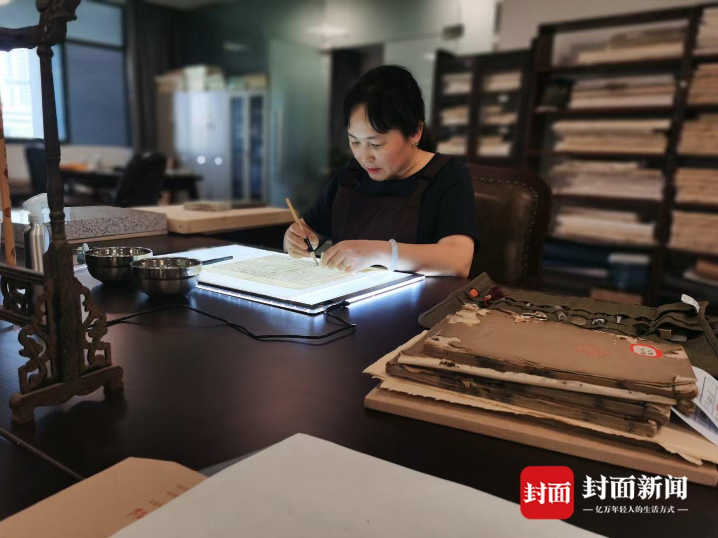 在成都中医药大学图书馆修古籍的林英。受访者供图。