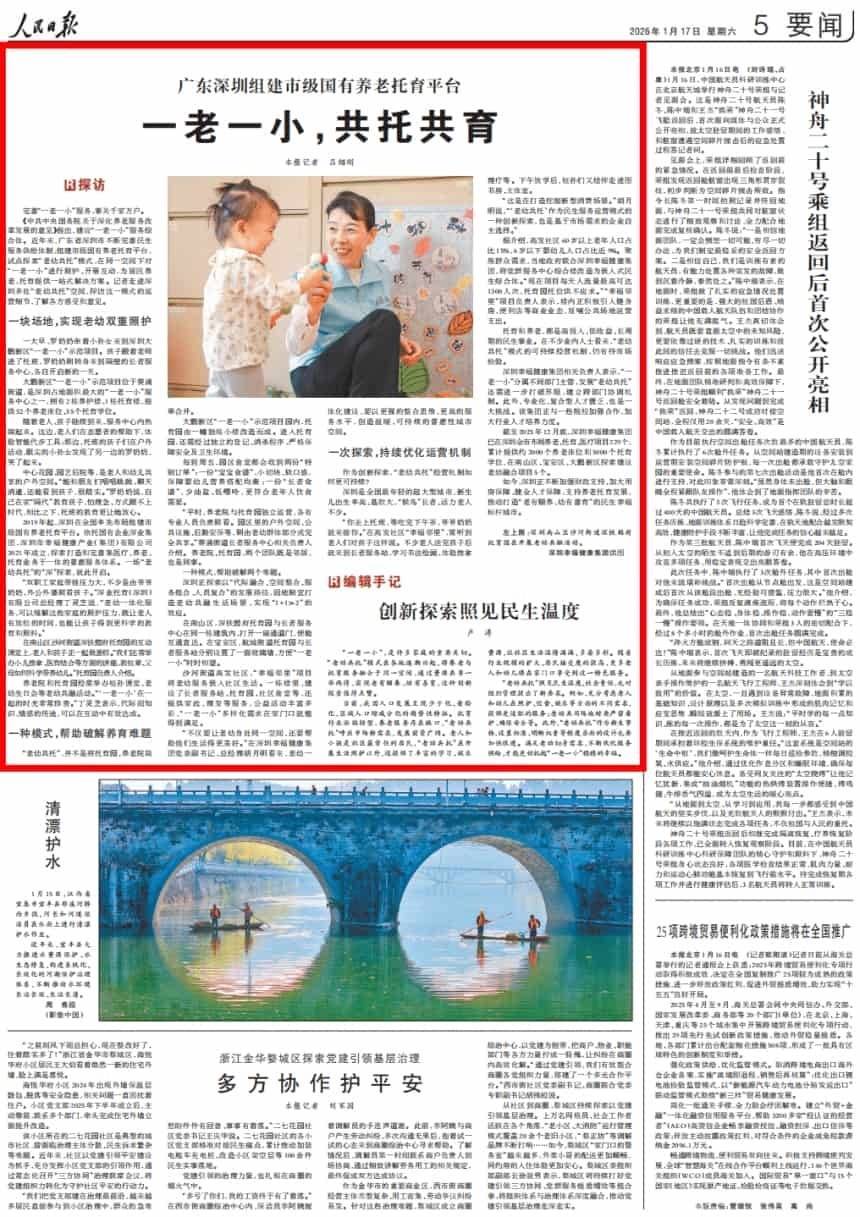 深圳正探索以“代际融合、空间整合、服务组合、人员复合”的发展路径,因地制宜打造老幼共融生活场景,实现“1+1>2”的效应。